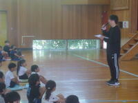 安全に学校で過ごすためのマナーとして気をつけるよう,お話してくれました。