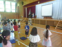 全校朝会も2回目ですが,入場時も静かでおしゃべりもなく,しっかりとした態度で臨んでくれ