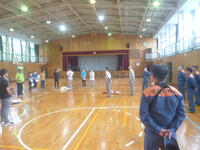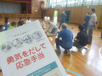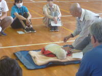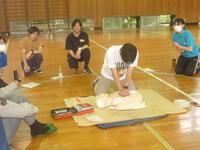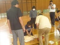 ダミーを使って,負傷者の発見から,心肺蘇生・AED使用までの一通りの動作・対応・操作を練習しました。