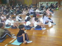 1年生にとっては,初めての体育発表会。一緒に練習している先輩の2年生の取り組みを目の当たりにし,