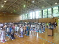 今年度初めての「全校朝会」,さらに1年生~6年生まで全校児童が揃っての初めての集会です。