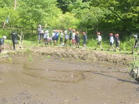 今年は,同じく下田の杜で田植え体験を行う酒井根小学校5年生と合同での実施です。