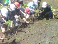 お米の栽培を通して,自然・食などについて学びます。自分たちが植えた苗の成長が楽しみですね。