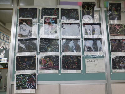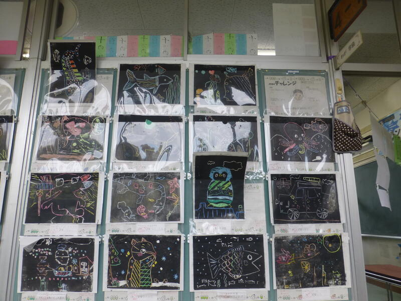 掘った線がはっきりしていて,印刷した後に塗った絵の具の色がはっきりでていていいですね。
