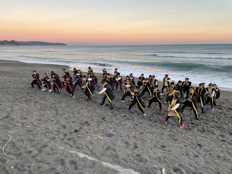 砂浜でおどった「ソイヤ!」