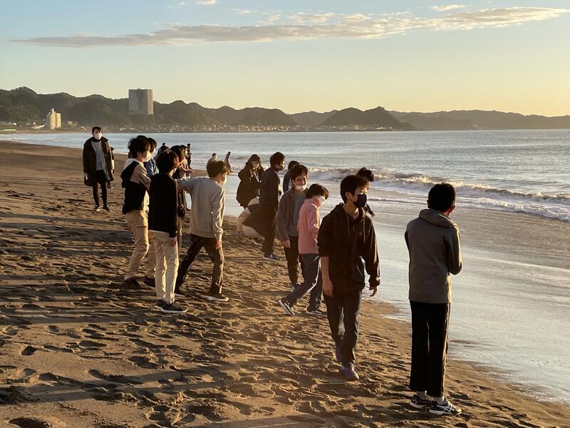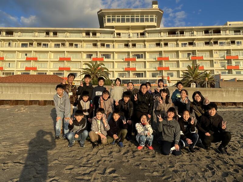 ホテル入りした子どもたちは、身支度を整えて、ホテルの前の砂浜に現れました。