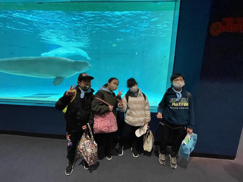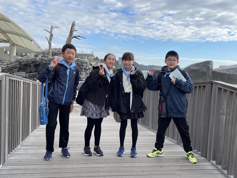 朝食をいただき、お世話になったホテルを後にした子どもたちは、鴨川シーワールドへ。早い時間帯ということもあり、酒西小は団体客一番乗りでした。