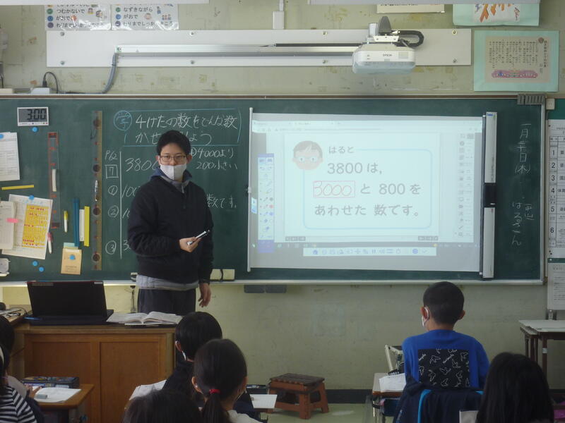 この日の学習問題は「4けたの数はどんな数か説明しよう」。