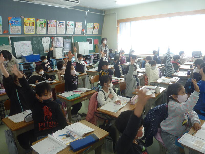 「さあ,どうかな。」という先生の声かけに,子どもたちの手が一斉に挙がります。