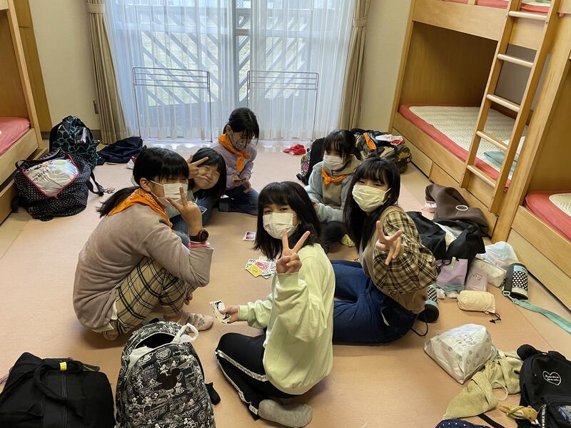 隙間の時間を見逃さず、みんなで部屋の真ん中に車座になり、カードゲームをしたり、話に花を咲かせたり…。