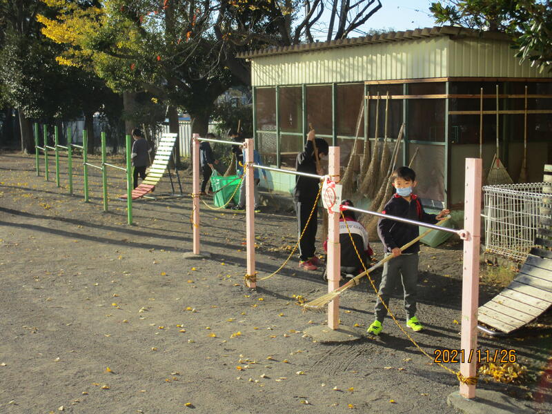 先月,酒井根西小学校では,3つの落ち葉掃除ボランティアの活動がありました。