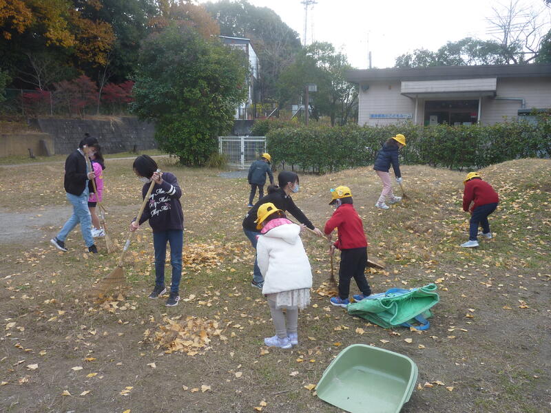 やる気を持って集まってくれた子どもたちです。皆一生懸命落ち葉を集めてました。