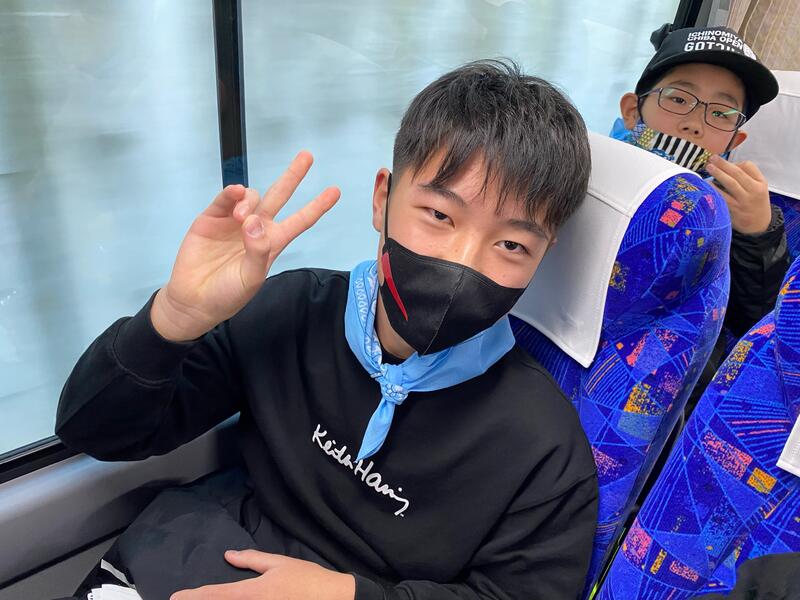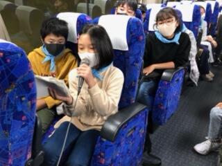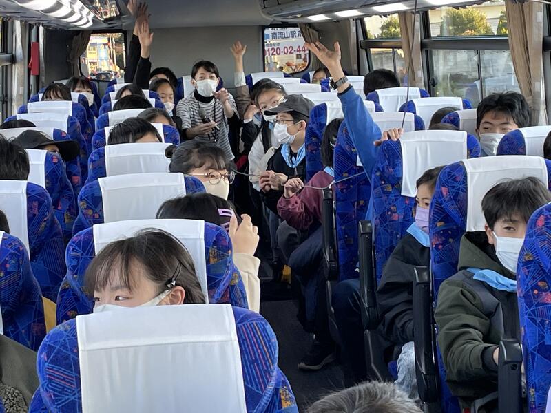 出発してまもなく、さっそくバスレクが始まりました。クイズ大会、インディアンゲーム、「私は誰でしょう」ゲームと、レク係の子どもたちがテンポよく進めます。