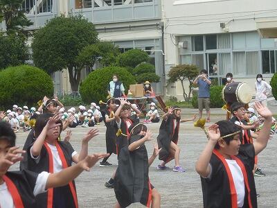 躍動感あふれる,3,4年生による「あしびなー(エイサー)」