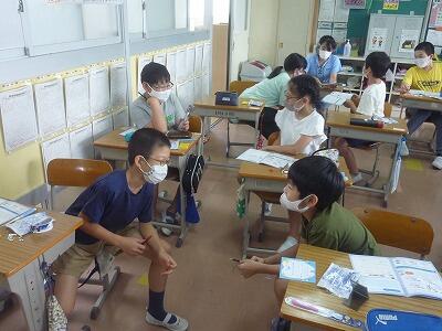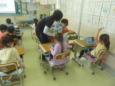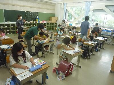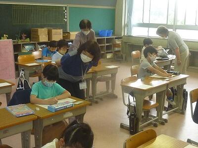 1年生と4年生の教室では,夏休みの準備,お話も終わり,