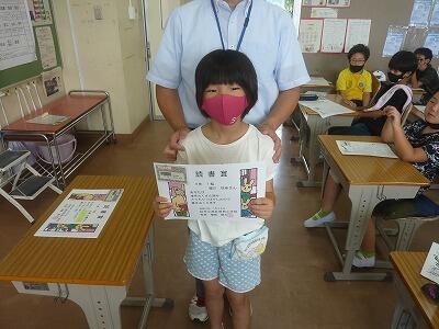 1学期間でたくさん読書に親しんだ子を表彰しました。