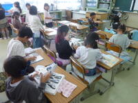 今日の5時間目は1年生の国語の授業を職員が参観しました。「はたらくじどう車」の学習で,図鑑などを見て紹介したい乗り物とその理由を考えていました。みんな真剣に取り組んでいました。