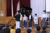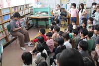 昼休みに図書室で5年生の図書委員が1,2年生に読み聞かせをしていました。声の大きさや聞きやすさに気を付けて上手に読んでいました。1,2年生もよく話を聞いていました。