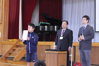 今月は柏市科学作品展や読書感想文コンクール,千葉県科学作品展,柏市陸上大会で活躍した子どもたちを紹介しました。科学作品展や読書感想文コンクールは特に優秀な成績だった児童が代表で賞状を受け取りました。