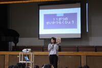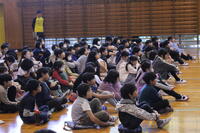 最近,登下校の際,道路を広がって歩くため危ないというお話を地域の方からいただきましたので,生徒指導の山形先生から道路の歩き方などについてルールの再確認がありました。ひたったひとつの命を大切にするため,安全に登下校をするように声をかけていきます。