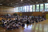 10月の歌「ビリーブ」を歌いました。音楽の時間や朝の歌でずっと歌ってきましたので素敵な歌声でした。この歌は西小フェスタでも全校合唱として歌います。楽しみにしていてください。