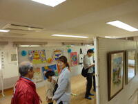 地域のサークルの演奏やダンス,書道や木彫などの作品が展示されています。