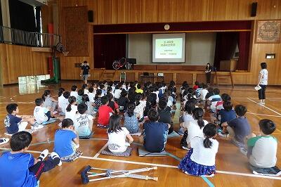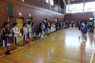 ミニバス選手を励ます会がありました。選手は来週行われるミニバス教室に向けて毎日一生懸命練習してきました。今日は選手に「頑張って!」の気持ちを込めて全校で応援しました。