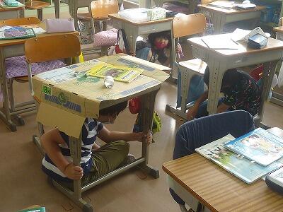 次の瞬間には,教室にいた児童全員が机の下に避難していました。