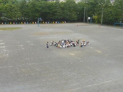 ・建物から離れ校庭の中心に集まる。(校庭)などなど。
