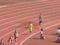 1年生は一生懸命に走り,6年生はやさしく声援しながらも,カウントして記録をとって