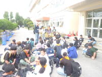 校庭で「到着式」を,2年生の実行委員が中心になって行いました。