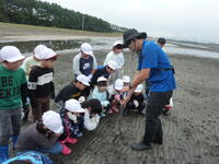 三番瀬では、干潟で「いきものさがし」、カニやヤドカリ、魚や貝などを探して観察します。