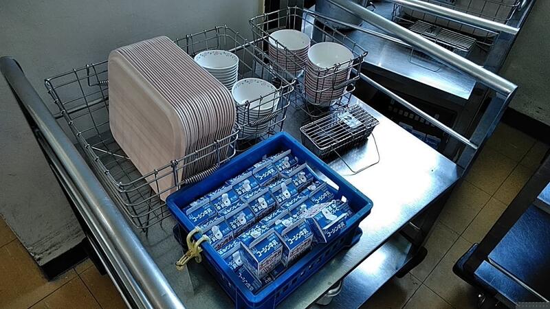 ↑教室に戻るときは必ず「手洗い」です ⑤11:50待ちに待った給食です