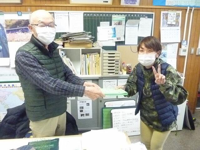 東山町会老人会会長山田さんが来校し、ぞうきんをたくさんいただきました。コロナ禍で、そうじにはぞうきんをたくさん使いますので、学校では大助かりです。ありがとうございました。