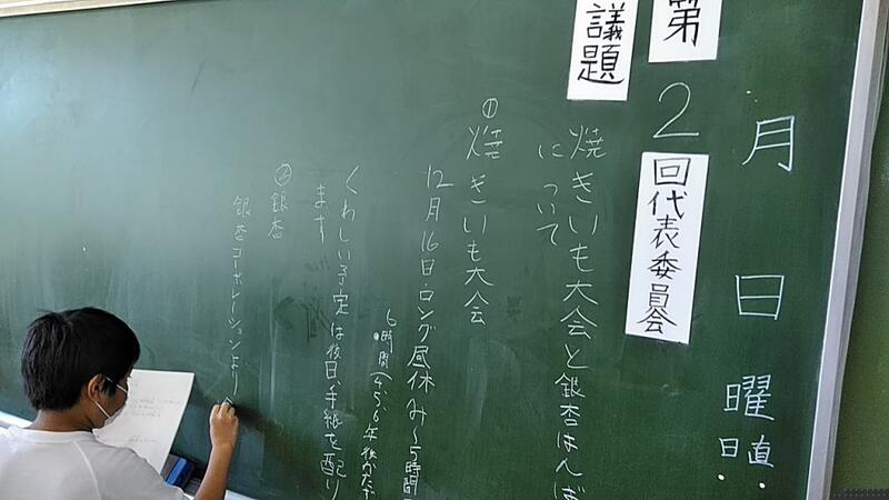 児童会役員、2年生~6年生までの各学級の学級委員1名と委員会の委員長で、月1回の「代表委員会」が行われました。今日は、各委員会から、活動報告とお願いがあり、児童会からは、「西山町会とのやきいもフレンズ集会」「西小ぎんなんコーポレーション(NGC)」の活動報告がありました。子どもたちも、できる限り色々な活動に取り組んでします。