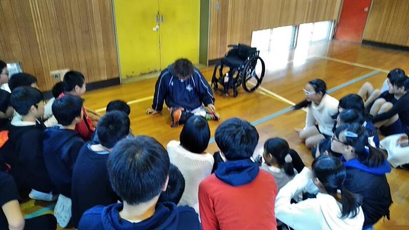 デモンストレーション、用具の説明、実際に乗ってみる体験と試合、質問タイムなど、2時間があっという間でした。私の心に残ったのは、「自分ができることを生かし、仲間ができることを認め生かしてゲームをすること。それはクラスでも同じだよね。」という言葉でした。講師の皆さん、子どもたちの心に響く授業、本当にありがとうございました。