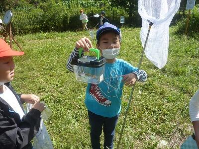 初めて虫を取った子は,自分の手で虫をつかんで虫かごに入れるのも一苦労です。