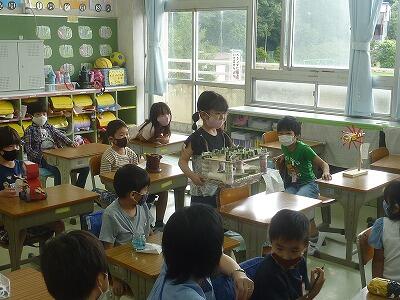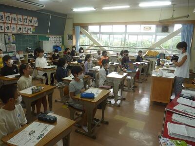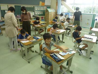 真剣に先生の話に耳を傾ける子どもたち! うーん,2学期のめあては何にしようかな…