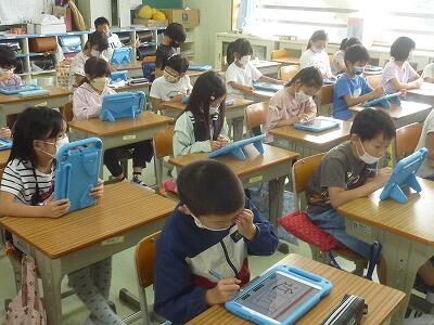 さっそく,タブレットを使って勉強しているクラスもありました。