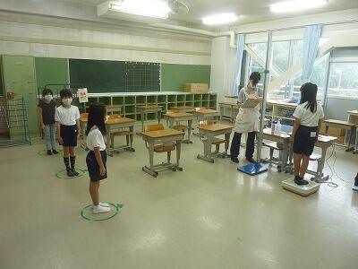 身体測定の様子です。 図書室から借りた本を返却しています。