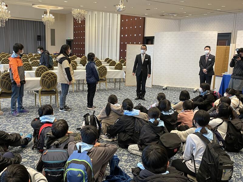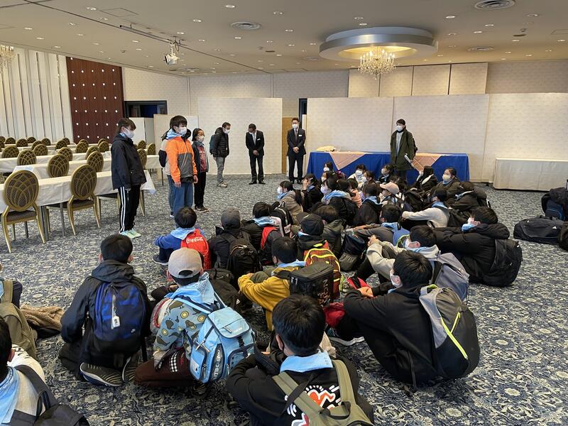 実行委員の立派なあいさつの後、支配人さんの歓迎の言葉をいただき、いよいよお部屋へ。子どもたちの期待も高まります。
