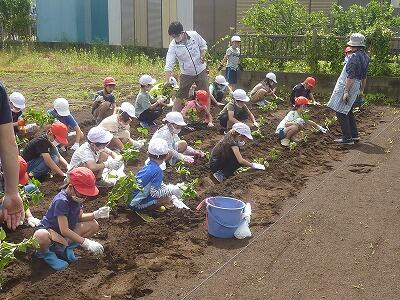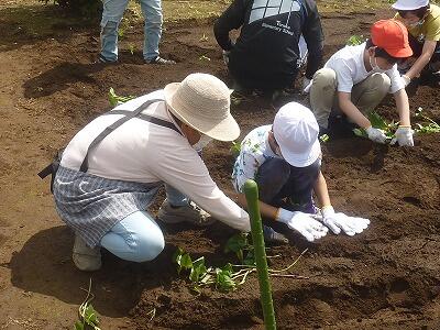 今年も,酒井根近隣センターの近くにお住いの,横尾さんにご協力いただき,2年生の子どもたちはさつまいもの苗を植えてきました。
