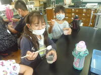下水道についての説明と,なぜトイレにティッシュペーパーを流してはいけないのかの実証実験をクイズを交えて行ってくれました。子どもたちは、興味を持って学習できました。