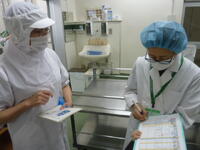 衛生検査では,薬剤師の方が,給食室全体の環境,衛生状況の確認,薬剤による食器洗浄の衛生状況確認,