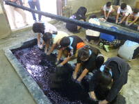 150年の歴史のある工房です。職人の方から藍染の歴史、染め方を学び、実際に体験しました。