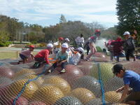 2年生をリーダーに、アスレチックや芝生広場など、公園内で集合時間まで遊びます。
