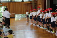 全校朝礼が終わった後に10月11日(水)に行われる市内陸上大会に参加する選手を激励する壮行会が行われました。酒西小の代表として精一杯頑張ってきてほしいと思います。全校児童が学校から応援しています。