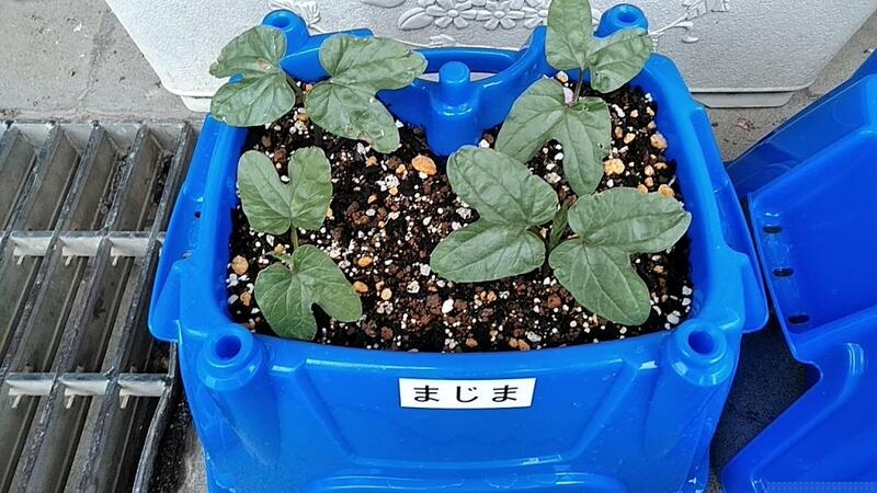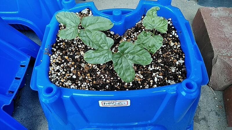 ↑左から平久・海老原・染谷の各先生方 ↑4年生のツルレイシも芽が出てきました