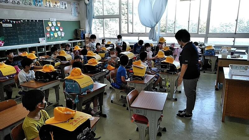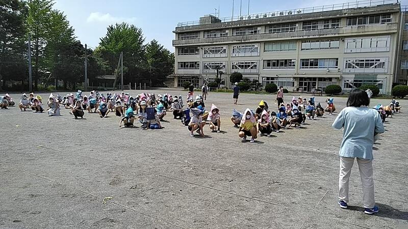 今日は、地震が起き、火災が発生したときの避難訓練を行いました。1年生は初めての避難訓練でしたが、おさない・かけない・しゃべらない・もどらないの「おかしも」も良く守られ、100点でした。命を守ることに関しては、いつもみんなが100点でなければだめです。最後に「自分の命は自分で守る」をもう1度確認しました。