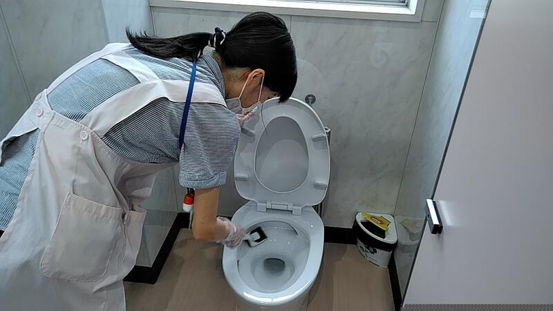 ↑こんなにたくさん(新しいものでなくても構いません)↑便器をきれいにしている埋金先生↑
